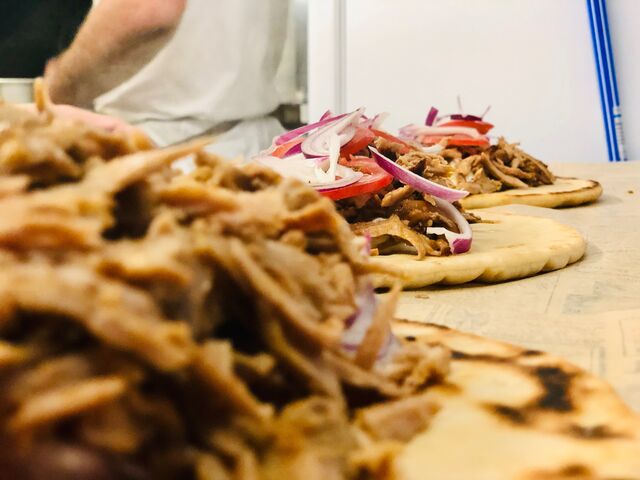 GYROS à la viande de porc français fait maison accompagné de sauce tzatziki très populaire à Athène.